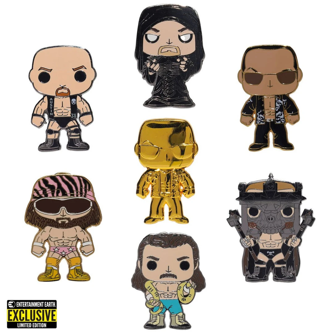 Entertainment Earth Exclusive! Capture the non-stop action with this exclusive WrestleMania Pop! pin assortment representing some of your favorite WWE Wrestlers. There is a special chase of The Rock in all gold! Each pin is blind packaged and measures about 1 1/2-inches tall. Don’t miss a single one!