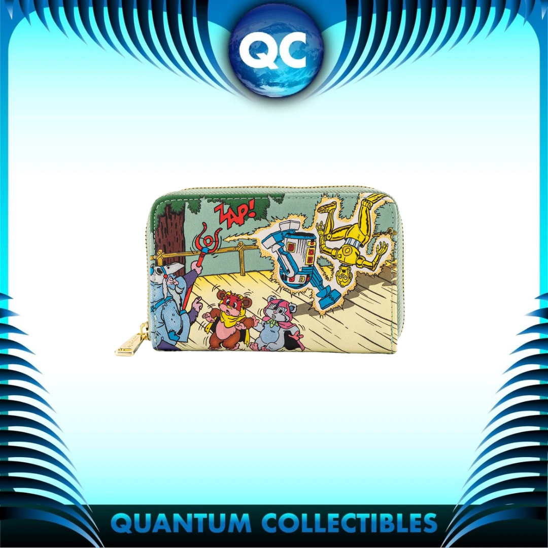 These are the droids youâre looking for! Rescue R2-D2 and C-3PO with the Star Wars⢠Exclusive – Ewoks and Droids Glow in the Dark Zip Around Wallet. R2-D2 and C-3PO are upside down and glow-in-the-dark as if by magic. The two ewoks below are shaken by their encounter with the mysterious, cloaked creature to the left. On the back youâll find the ewok village built high up in the trees. This wallet has 4 slots for holding cards, as well as a clear window slot for holding your ID, and a zipper pocket. This walletâs design is a blast from the past and is a striking accessory, thatâs sure to bring smiles to Star Wars fans. Act fast to secure this Loungefly.com exclusive accessory for your collection!