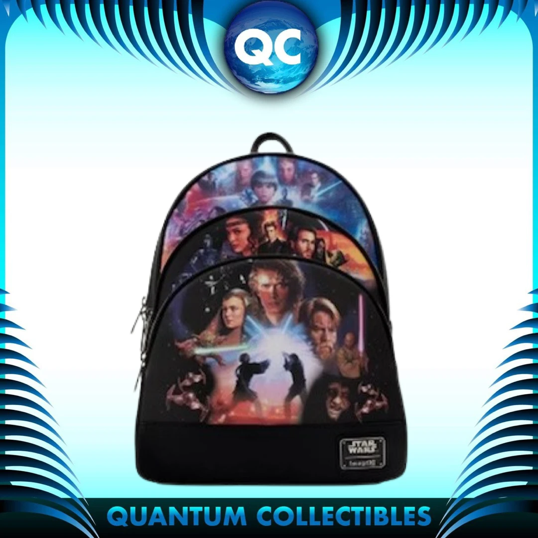 Shield your possessions with the power of the Force with this Star Wars Prequel Trilogy Triple Pocket Mini Backpack. Three zipped compartments on the front are dedicated to scenes from Star Wars movies including The Phantom Menace, Attack of the Clones, and Revenge of the Sith. On the back, the words “May the Force be with you” offer protection.