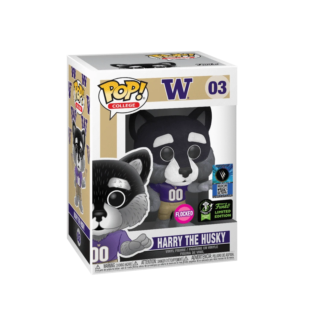 University of Washington fans, family, students, and alumni get your 2020 Emerald City Comic Con Exclusive Flocked Harry the Husky Pop! to show your university love, loud and proud!